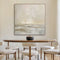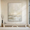 A serene duet of misty taupe and warm cream emphasizes calm and space. Horizontally divided, the textured waves occupy the canvas’s lower third, while the upper two-thirds remain mostly unpainted to amplify a sense of boundless sky. This balance between movement and stillness invites quiet contemplation.