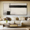 A composition of ivory and charcoal unfolds in restrained harmony. The geometric divisions evoke balance and depth — a spatial silence that complements modern interiors seeking calm precision.